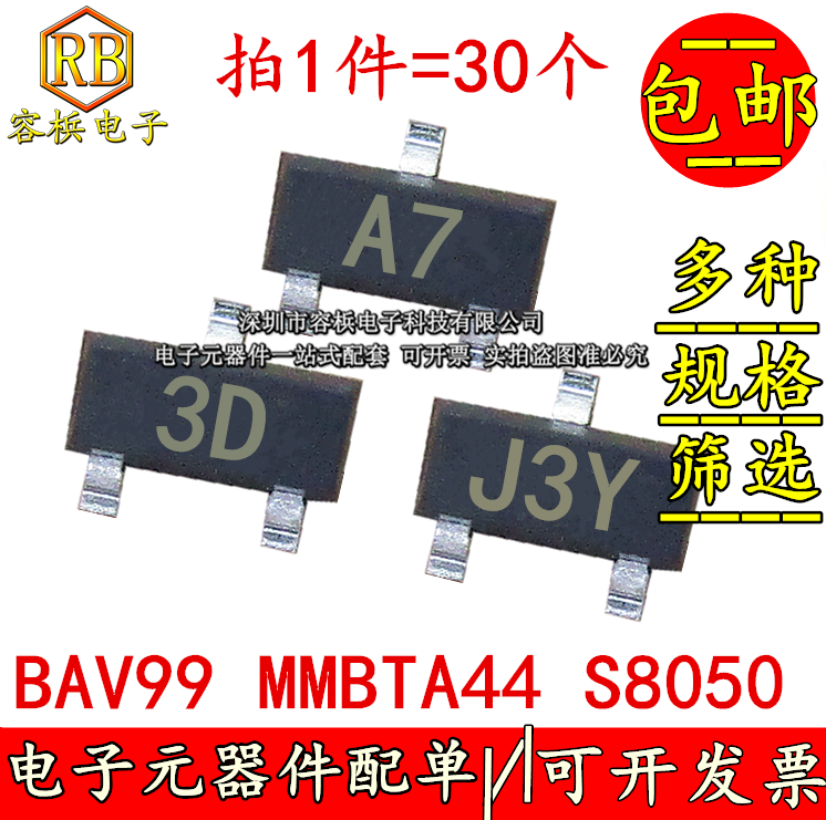 全新貼片bav99 Mmbta44 S8050 網版印刷字a7 3d J3y Sot 23三極管
