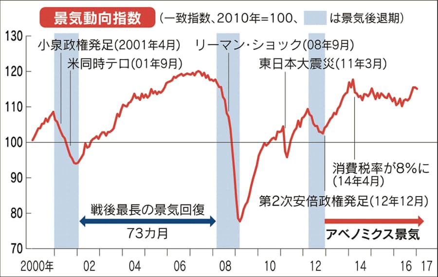 アベノミクス景気 戦後3位の52カ月 実感乏しい回復 日本経済新聞