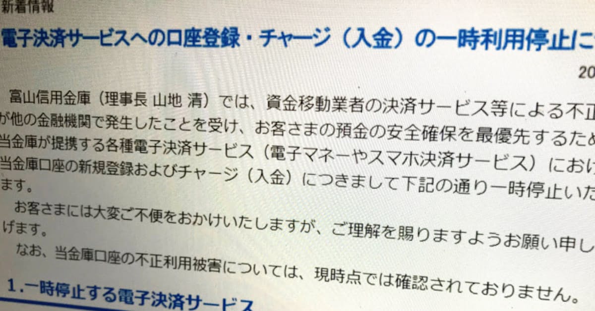 山梨中央銀行 未然防止でスマホ決済サービス停止 日本経済新聞