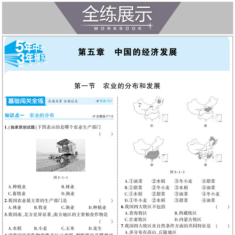 版五年中考三年模擬國一下冊地理中圖版同步習題練習簿五三初中地理同步訓練題冊初一地理同步練習輔導資料書國一下冊