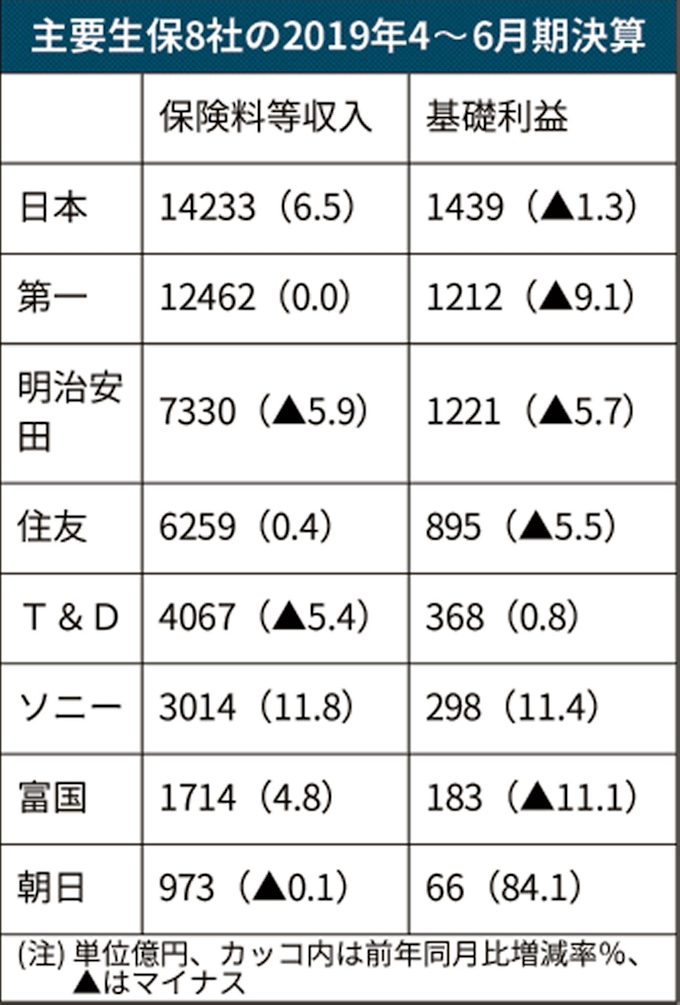主要生保の4 6月期 5社が増収 外貨保険は減速 日本経済新聞