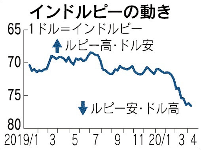 インドルピー軟調 コロナ禍で全土封鎖続く 日本経済新聞