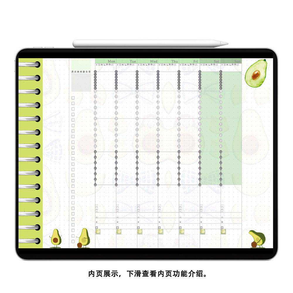 電子手賬素材goodnotes模板24時間軸內頁周計劃notability牛油果